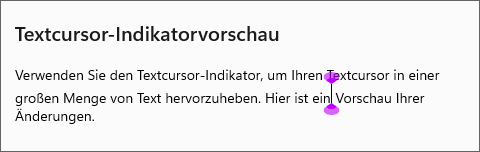 In der Kategorie Barrierefreiheit der Windows 11-App Einstellungen lässt sich der Textcursor auf der gleichnamigen Seite anpassen und über den einen Schieberegler in der Breite ändern. Noch sichtbarer wird der Cursor, wenn Sie den Textcursor-Indikator verwenden (Schieberegler Ein), den Sie in der Farbe und Größe ändern können. Die App zeigt Ihnen in einer Vorschau, wie der Cursor im Text aussehen wird: