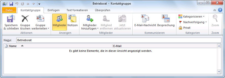 Outlook 2010 Kontaktgruppenname