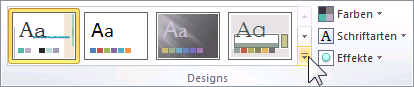 Klicken Sie auf der Registerkarte Entwurf in der Gruppe Designs auf das Weitere-Symbol