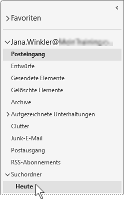 Nun können Sie an jedem beliebigen Tag im Ordnerbereich den Suchordner durch Klick auf den Pfeil erweitern und auf Heute klicken, um die E-Mails des aktuellen Tages anzuzeigen.