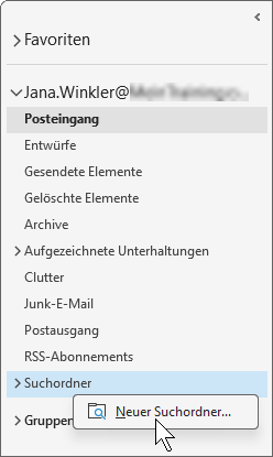 Klicken Sie mit der rechten Maustaste auf Suchordner und wählen Sie Neuer Suchordner.