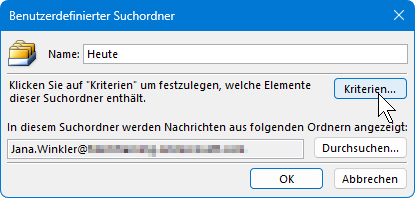 Geben Sie im Dialogfeld Benutzerdefinierter Suchordner einen Namen ein (z.B. Heute) und klicken Sie auf die Schaltfläche Kriterien.